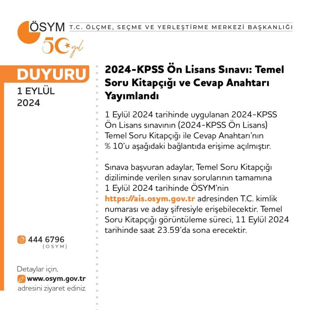 ULUSAL (PHA) - Rojin SÜNGÜ - 2024 KPSS Ön Lisans sınavı, 1 Eylül Pazar günü gerçekleştirildi. Sınava katılan adayların heyecanla beklediği sınav soruları ve cevap anahtarı, ÖSYM tarafından erişime açıldı.
