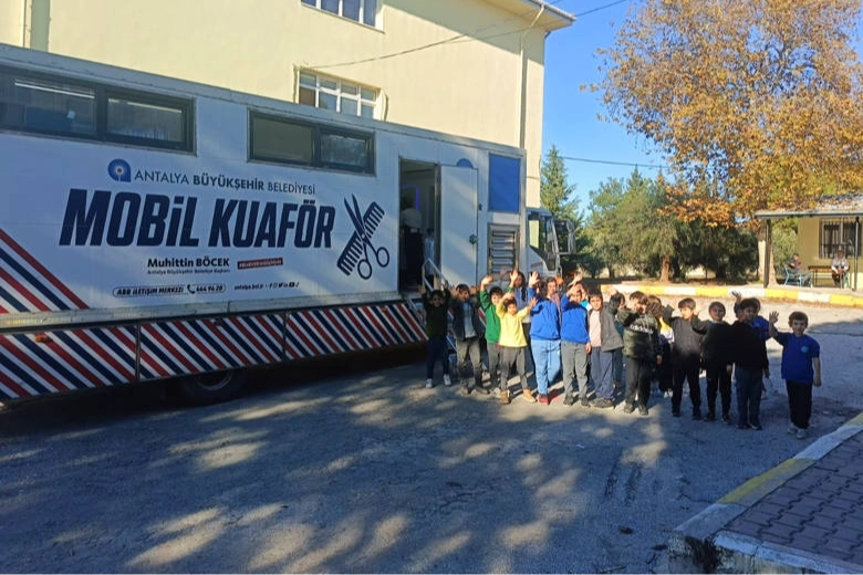 Antalya Büyükşehir Belediyesi Mobil Kuaför Tırı, Manavgat ve Kaş’ın merkezine uzak mahallelerinde yaşayan öğrencilere ücretsiz saç kesimi yaparak, ailelerin büyük bir ihtiyacını karşıladı.
