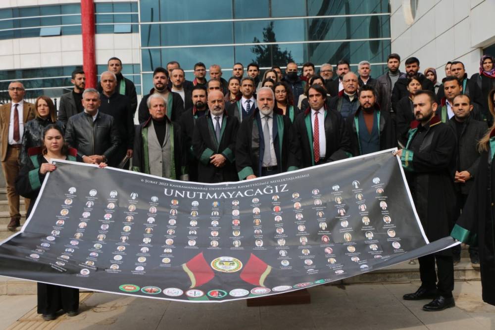 Adıyaman Barosu olarak depremde yaşamını yitiren meslektaşlarını unutmadıklarını vurgulayan Bilal Doğan, hayatını kaybeden ve hala bulunamayan avukatların isimlerini anarak şunları söyledi: