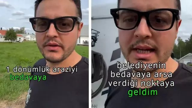 İsveç'te karavanda yaşayan içerik üreticisi Zafer Atalay, belediyenin bedava verdiği 1 dönümlük araziyi ziyaret ederek, "Tek koşulu ise "gelin burada yaşayın" diyor" ifadelerini kullandı.