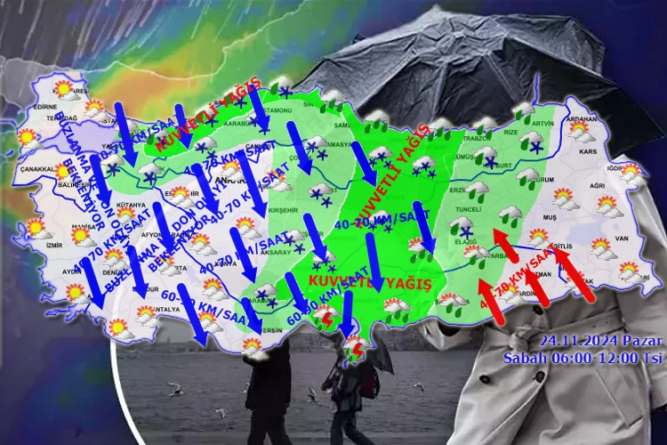 Rüzgar, sağanak yağış, kar... Bugün yurt genelinde ne ararsanız var! Türkiye'nin iç ve kuzey kesimlerinde buzlanma ve don olayı bekleniyor. Meteoroloji'nin günlük raporunda kuvvetli yağış ve fırtına uyarıları da yer alıyor. İşte havanın 24 Kasım Pazar raporu.