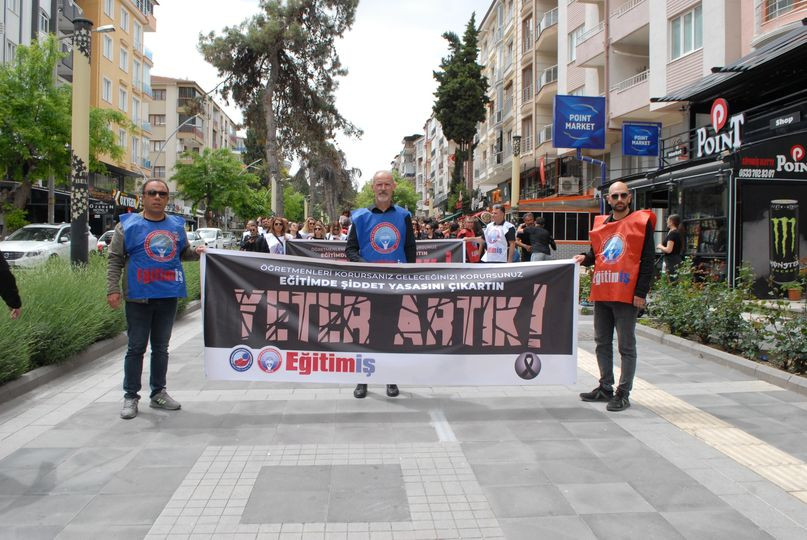 -Okullarda yaşanan şiddet olaylarındaki korkutucu tırmanışı engellemek için bir an önce eğitimde şiddet yasası çıkarılmalıdır. hedef alınmayan eğitim emekçileri okullarda şiddetin hedefi olmaya devam etmektedir.