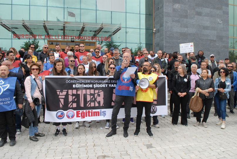 Eğitim-İş Burdur Şube tarafından İstanbul’da görev yapan bir okul müdürünün öğrencisi tarafından öldürülmesinin ardından iş bırakma eylemi gerçekleştirdi.