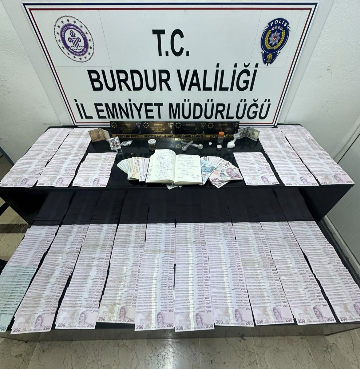 Burdur’da polis ekipleri tarafından durdurulan bir araçta uyuşturucu madde ve yüklüBurdur İl Emniyet Müdürlüğü ekipleri tarafından 21 Mayıs tarihinde il merkezinde durdurulan bir araçta yapılan aramada 17,84 gram metamfetamin, 3,16 gram sentetik kannabinoid, 5 adet sentetik ecza, uyuşturucu madde alışverişine ilişkin bilgiler bulunan 1 adet ajanda, uyuşturucu madde ticaretinden elde edildiği değerlendirilen 186 bin 270 TL, 100 Dolar, 50 Euro ve uyuşturucu madde kullanımına yarayan aparatlar ele geçirildi.Konu ile ilgili Valilikten yapılan açıklama şöyle: "