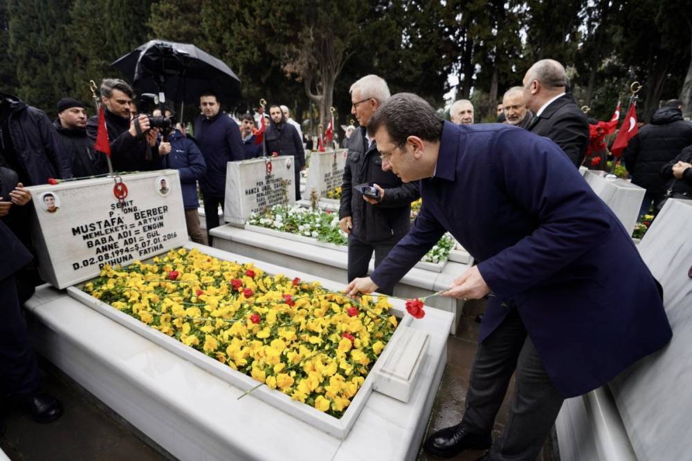 İmamoğlu, 18 Mart Çanakkale Şehitleri Anma Günü kapsamında Edirnekapı Şehitliği’nde düzenlenen resmi törene katıldı. Programın ardından şehit yakınlarıyla bir araya gelen İmamoğlu, şehit mezarlarına karanfil bırakarak dualar etti.