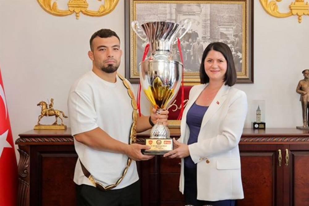 Kırkpınar Başpehlivanı Yusuf Can Zeybek’ten, başkan Filiz Gencan Akın’a ziyaret