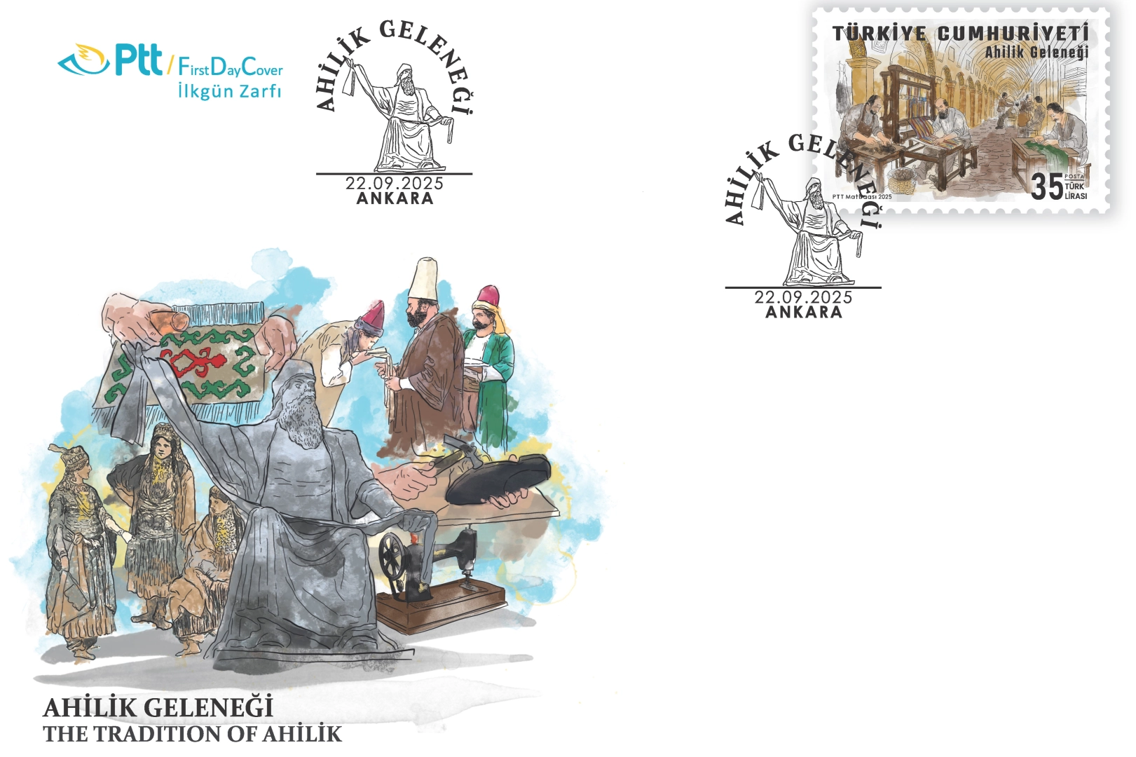 PTT AŞ tarafından “Ahilik Geleneği” konulu anma pulu ve ilkgün zarfı 22 Eylül 2025 tarihinde tedavüle sunuldu.