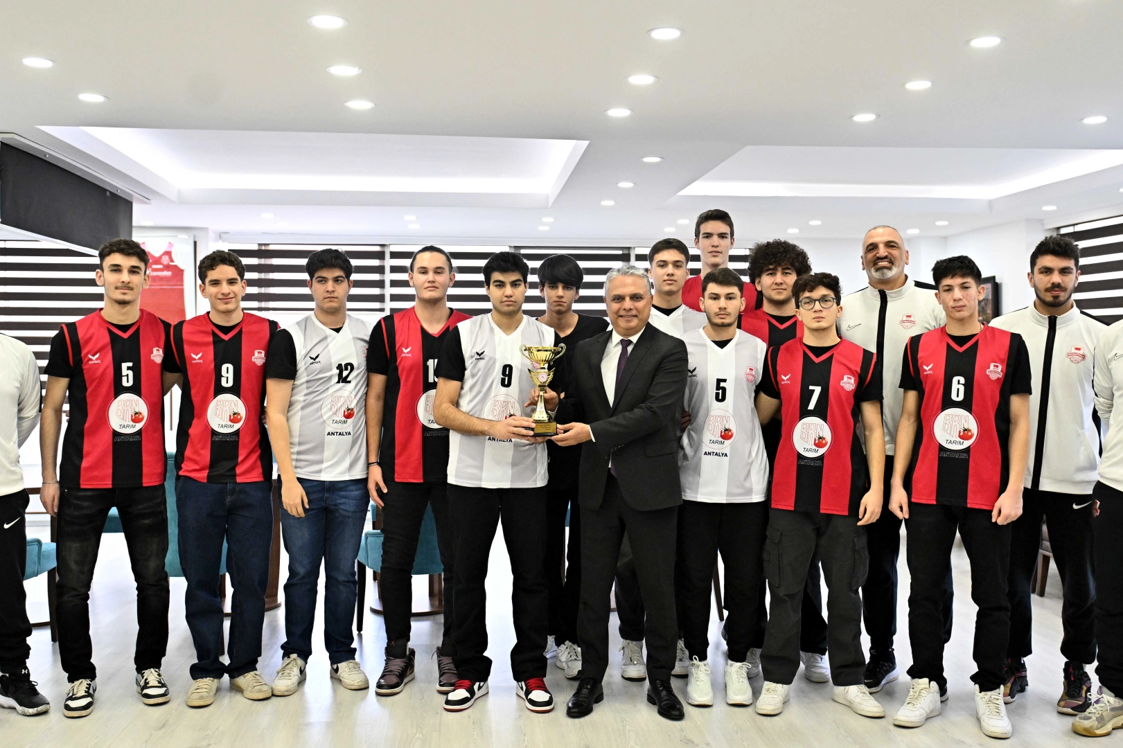 Antalya’da 2’ncilik elde ederek Bölge Şampiyonası’na katılmaya hak kazanan Muratpaşa Belediyespor’un U-18 Basketbol Takımı oyuncuları, Belediye Başkanı Ümit Uysal’ı makamında ziyaret etti.