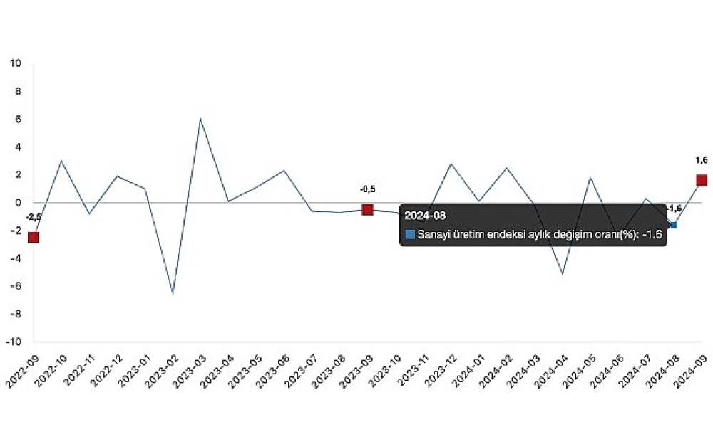 Sanayinin alt sektörleri incelendiğinde, 2024 yılı Eylül ayında madencilik ve taş ocakçılığı sektörü endeksi bir önceki aya göre %1,2 arttı, imalat sanayi sektörü endeksi %1,8 arttı ve elektrik, gaz, buhar ve iklimlendirme üretimi ve dağıtımı sektörü endeksi %1,8 azaldı.