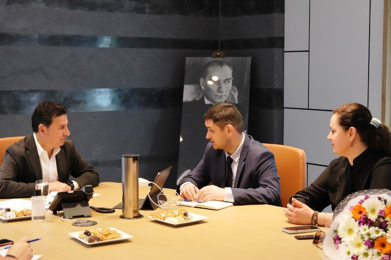 Yaklaşık 1 saat süren görüşme sonunda Başkan Aras, Ukrayna’nın Antalya Konsolosu Voronin’e BOTAV Center’ı gezdirerek çalışmalar hakkında bilgi verdi.