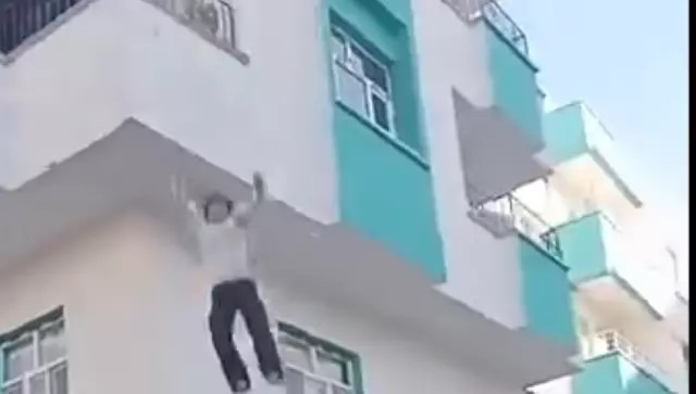 Alevlerin hızla yayılmasıyla birlikte balkonda mahsur kalan genç kız ve çocuk, dumandan etkilenmeye başladıkları anda binadan inme şansı bulamayınca aşağıda toplanan vatandaşların açtığı battaniyeye atladı. ,